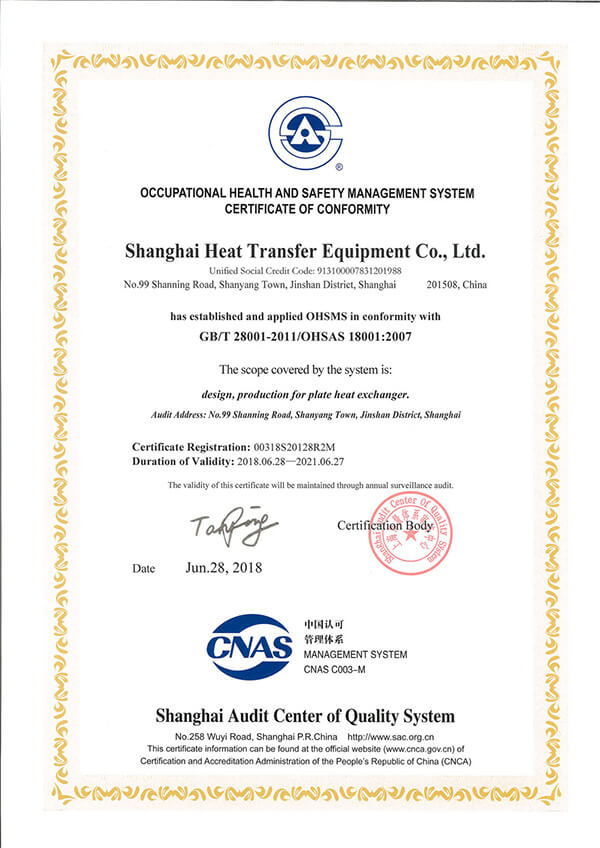 Facilities Facilities such as 60MN/200MN high precision press, 2mx15m automatic electric resistant /arc welding machine, automatic multi-spot welding machine, TIG welding machine ensure the hardware capability for manufacturing different plate heat exchangers. Certificates